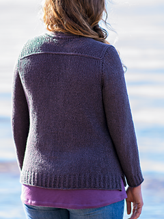 The open-front design features set-in sleeves that are worked from the top, asymmetric armhole shaping to keep the sweater sitting nicely on the shoulders, an optional split or solid hem, and an applied neckband with a clever double-knit edge.