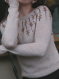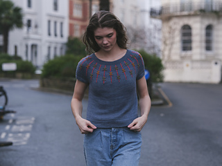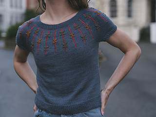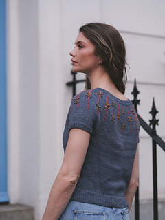 Bowline is a top-down circular yoke tee that combines classic style with a unique woven texture. The tee is worked seamlessly from the top down and features a tactile 1X1 Broken Rib collar that is mirrored on the cuffs and hem. The eye-catching yoke displays vertical columns of a dimensional beaded inlay design. Using two contrasting colours of seed beads on a contrast yarn, you’ll create floats that are laid into the fabric, giving the effect of a beautifully woven pattern. Designed for a relaxed fit and effortless wearability, the Bowline Sweater is perfect for layering or wearing on its own. Instructions are given for both short and long sleeve versions, so you can adapt your Bowline according to the season.