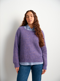 The Boyfriend Sweater is a cosy, slightly oversized knit. Classic raglan shaping, stockinette in the round and holding two different textured yarns together make this sweater a breeze to make.