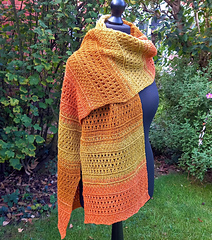 Finished size after blocking is: 84 inches long by 12 inches wide.