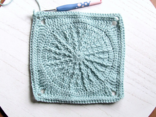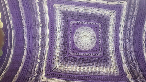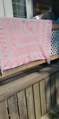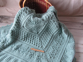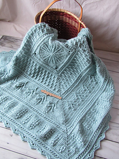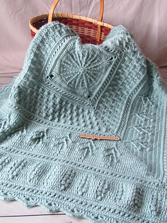 A pretty square baby blanket crochet pattern created from the center out. Pattern uses different stitch patterns to create the story of the blanket.