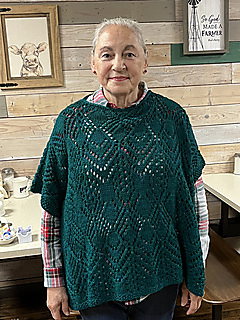 This is a lovely project for fall. It’s light enough to wear on cool summer nights also. The lace offers a more feminine type of garment than the same old poncho. Here in southern California, it’s about as heavy as I’d ever need even though we get snow once or twice a year at our elevation.