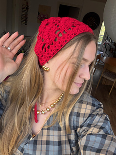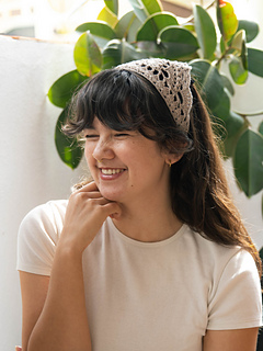 The Breezy Boho Bandana is a fun and fast little crochet project, great for stash busting. It features pretty eye-catching lace details and open stitch work formed by using very basic crochet stitching. The head scarf is a cute addition to your warm weather wardrobe and will add a fun boho, summer vibe to your look in no time.