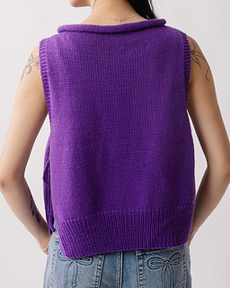 Back and front are worked separately and joined at the shoulder. The sides are open with I-cord ties.