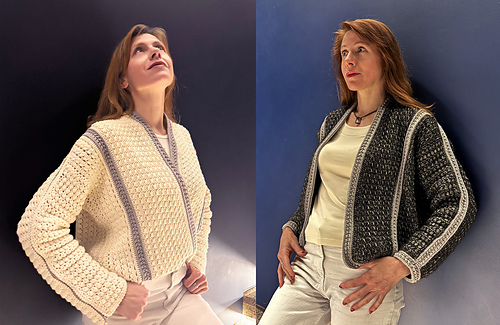 - Instructions written in US crochet terms for both pullover sweater and cardigan versions.