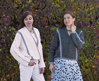 Both garments are designed with dropped shoulders and 14-21 cm = 5.5’’-8.3″ of positive ease around the bust. For more ease around your hips, you can work body with 21-26 cm = 8.3’’-10″ of positive ease than your bust circumference. This pattern is adjustable to any size, length and fit, however, all measurements, yarn amounts, stitch and row counts are given for the stated gauge, length and sizes.