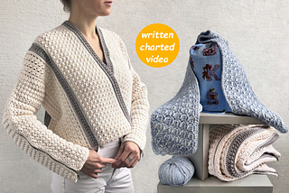 - Customizable to your yarn: gauge-based and made-to-measure instructions are included, so your cardigan or pullover sweater can be made to your yarn and fit.