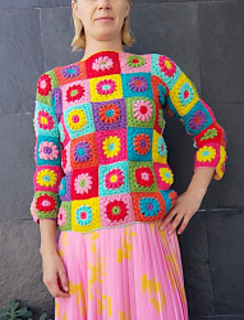 > Bright Granny Square Sweater