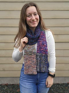 The Brioche Nebula Wrap is a reversible 2-colour brioche wrap pattern that comes in 3 sizes and 2 weights. This wrap is written for both fingering and DK weight yarn, and with scarf (designed for 20 g minis), shawl (designed for 50 g skeins) and blanket (designed for 100 g skeins) size options. This shawl is designed in collaboration with Treehouse Knits Traveling the Universe Advent for December 2025. It is designed to be knit with 18 colours (9 pairs), but could easily be adapted to another number of colours! The simple rectangular construction of the wrap allows for the 2-colour brioche to really shine, but remain an easily adjustable and fairly beginner-level pattern.