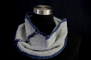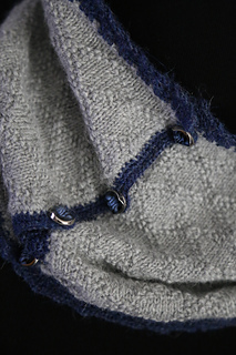 This cowl is worked flat in a textured stitch pattern consisting of just knits and purls. A crocheted edging in a contrasting color and weight of yarn is then applied, with one short edge having crocheted button loops applied. Four buttons are sewn on the opposite short side to form the tube of the cowl and to add interest. Feel free to substitute a different crochet edge! The one in the pattern is a simple understated edge, but a larger, more frilly edge would be lovely as well.