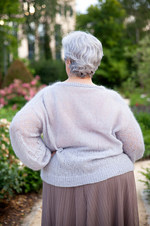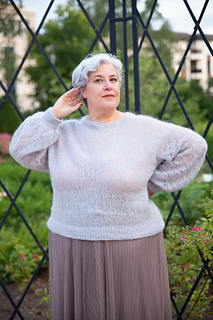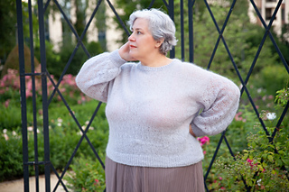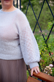 Il s’agit d’un pull tricoté de haut en bas. Montez les mailles dans le dos et tricotez jusqu’aux emmanchures, relevez les mailles le long des épaules et tricotez les devants séparément pour donner de la forme à l’encolure. À la fin de l’encolure, joignez les devants et tricotez jusqu’aux aisselles. Ensuite, joignez le devant et le dos et tricotez le corps en rond. Relevez les mailles autour des emmanchures pour tricoter les manches en rond. Pour finir, relevez les mailles autour de l’encolure et tricoter le col.