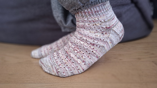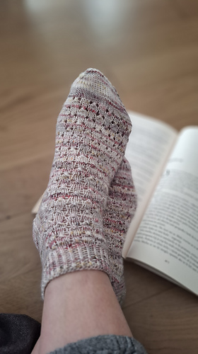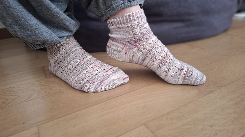 Bugi socks are designed as shortie socks worked top-down, but the length of the leg is easily customizable. If you are like me, sharing a love for casual socks seasoned with a pinch of texture achieved just through increases and decreases, then Bugi socks is just the pattern for you! The pattern is suitable for advanced beginners.