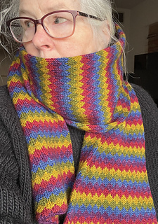 In the pursuit of simplicity, this scarf is just a long tube with the unused colors carried up the inside. The resulting scarf is so soft and cozy, I never want to take it off.