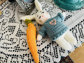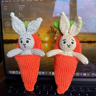 Meet this adorable little bunny, snugly tucked inside its cozy carrot sleeping bag! Both the bunny and its carrot bed are knitted flat on two needles. This sweet handful-sized pair makes a perfect Easter gift, spring decoration, or cute surprise for little ones. Whether you’re adding a handmade touch to an Easter basket or crafting a keepsake toy, this bunny-in-a-carrot-bed is sure to hop right into your heart!