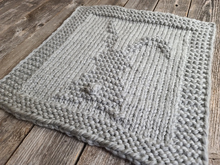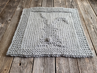 NEEDLE Knitting Pattern ♥ The Bunny Square has been updated to fit a “standard size” across all of my “square” patterns. It is worked flat from the bottom up. It features a textured border and center bunny.