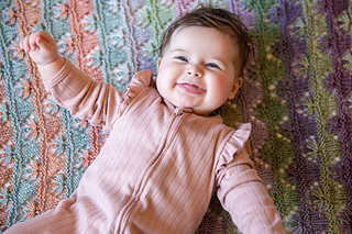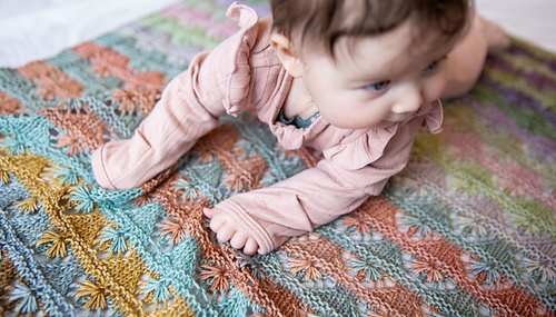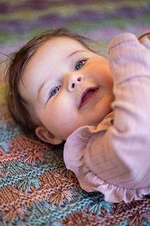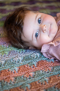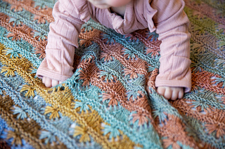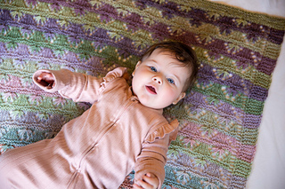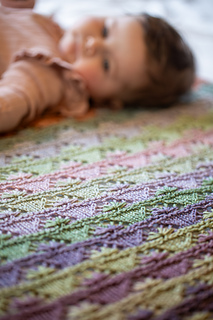 NOTE: The size small makes a great stroller or lap blanket, while the size large makes a lovely crib blanket or small throw. This pattern is easy to adjust. To add width, work additional pattern repeats. To add length, work additional stripes until you reach your desired length.