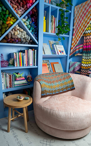 Knit seamlessly from the bottom up, this blanket is ready to help you fly through your stash yarn. I used an advent kit from Canon Hand Dyes to make my Butterfly Field blanket. You can use mini skeins, full skeins, or scrap yarn to create a blanket that fits your home and your stash.