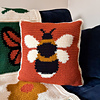 The Buzzing By Cushion is a bold, modern crochet cushion featuring a graphic bee motif inspired by nature. Clean lines and strong shapes give the design a confident, graphic look, while the warm, earthy color palette keeps it feeling cozy and lived in. It works beautifully as an accent piece on a sofa, chair, or bed.