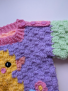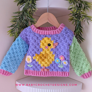 This jumper comes in 16 sizes, with 3 different Spring animal designs, so is perfect for the whole family! It is made using corner to corner technique making 4 panels, which are then joined together using a crochet method shown in the video and progress photos, so no sewing is needed. Also included is a sleeveless option.