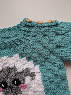 The jumper is constructed following the charts provided, rather than a full written pattern. I have included instructions on how to start corner to corner, add shaping, change colours, follow the charts, some progress photos and a video. The animal size increases every few sizes so that it doesn’t become too small.