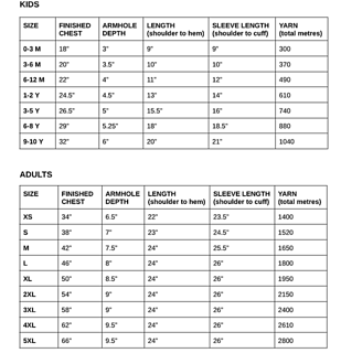 The PDF is 68 pages with a handy size chart, plenty of progress photos and a chart in each size for each design.