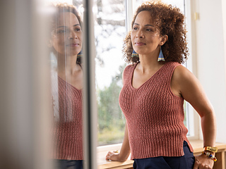 The upper sections of the fronts are worked next, also with short rows at the top, followed by increases for the V-neck and the armholes. Each front is worked to the same length as the back.