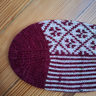 Se pueden tejer los dos calcetines a la vez. Cuando llegues al talón los separas, una vez que recoges los puntos del escudete los vuelves a unir para seguir tejiéndolos al mismo tiempo.