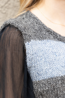 The vest begins with a ribbed hem that may be worked with flat intarsia (tangy) or intarsia-in-the round (piquant)—both options are given. The body of the sample pullover is worked seamlessly from the ribbing up. While it appears to be worked in the round, it is actually worked as flat intarsia and open at the front, except for the cables. The edges are finished with stretchy i-cord that is worked as you go, so the finishing is minimal--mostly grafting the shoulders.