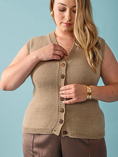 Smart, sophisticated style is a snap with the fitted Calla vest. Fully fashioned waist shaping highlights or creates curves, adding a modern twist to this timeless V-neck vest. Worked in one piece from the bottom up, you can add optional patch pockets and choose from Cashmello’s expansive color palette to make it your own.