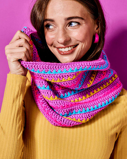 Stylecraft Special DK, 1 ball of each Magenta (1084), Turquoise (1068), Dandelion (1856) and Fiesta (1257).