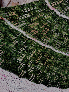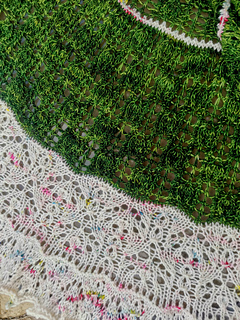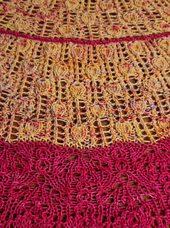 Garter tab CO, knitting flat, lace knitting on RS, twisted sts, knot st, basic increases and decreases, kyok increases, picot BO.