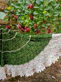 Cappero shawl is inspired by the caper plant. The half-pi shape gives a generous depth to the shawl. The increases are made in the eyelet sections leaving the lace repeats simpler and easy to memorize. Picot edging gives a romantic touch to the shawl.