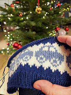 Gauge: 22-25 stitches over 10 cm stranded colorwork, depending on size (see below).