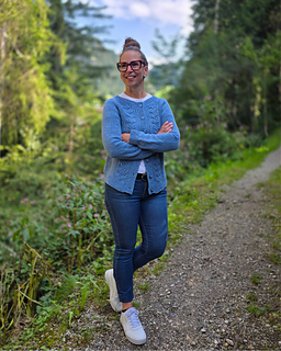 Auf den Fotos trage ich den Cardigan in Größe S mit ca. 9 cm zusätzlicher Weite.