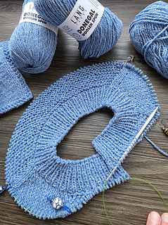 Maschenhalter oder Wollreste zum Stilllegen der Ärmelmaschen