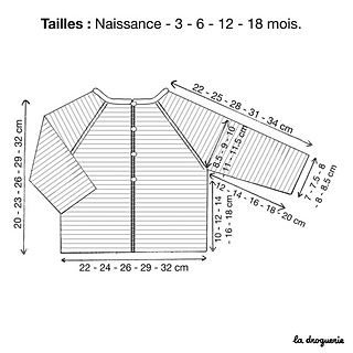 Tailles : Naissance - 3 - 6 - 12 - 18 mois.