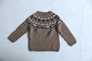 ヨークで袖と身頃をつなげ、模様編みと分散減目をしな