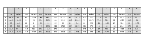 See schematic and table (in photos to left - click photo to view all measurements) for further details.