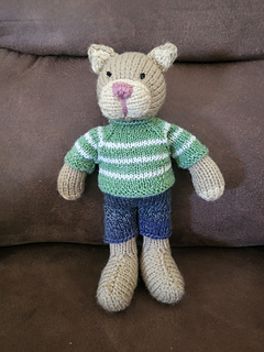 The pattern is for knitting flat on two needles and all pieces are seamed afterwards. Please note that this project is not a quick or simple knit. It takes me around 14 hours to make and finish each of the animals that I make and just under half of that time is spent on the finishing off. There are lots of separate pieces which require seaming and sewing and if you are looking for something fast and easy you would probably be better off finding a different pattern. That said this PDF file will give you all of the information and techniques that you need to knit the little cat pictured.