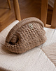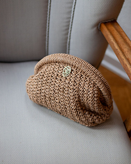 Farver på billederne: Den camelfarvede Celina Clutch er strikket i Linen farve 07 Brown Sugar sammen med Havblik farve 16 Lys Brun.