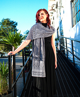 The wrap is a rectangle worked from the short side up. The border is worked first, followed by the Body. The second Border is worked separately and grafted to the Body over a plain Stocking stitch row.