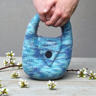 This bag is knitted first in pure wool and then felted in an ordinary washing machine.
