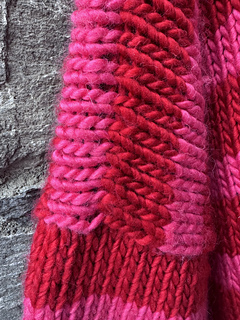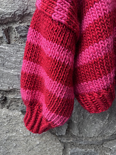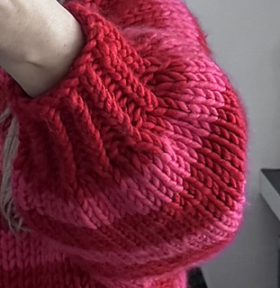 Needles: US 15 / 10 mm 32” / 80 cm circular needles (for main body) and US 17 / 12 mm 32” / 80 cm circular needles for ribbing. Use Magic Loop Method or smaller circumference circular needles or DPNs in both sizes for the sleeves.