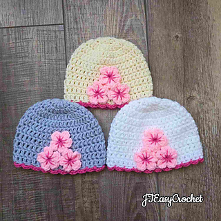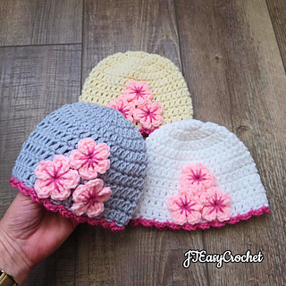 Fast and easy crochet pattern for a charming Cherry Blossom (Sakura) beanie, perfect for spring, featuring delicate handmade floral appliques. Suitable for beginners, this crochet project works up quickly using basic stitches and the beanie can be made for all sizes, from newborn to adult.