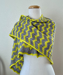 Knit this chevron shawl in the striped pattern shown with just two skeins of luxurious yarn, or show off the geometric stitch pattern by substituting colorful scraps!