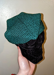 “This cap is knitted throughout in moss stitch”