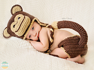 Create lasting memories with Chip the Monkey! This hat and diaper cover with cute little tail will make your baby photos unforgettable. You can also skip the tail and make a cuddly ape that’s just as charming! The pattern is written row-by-row using US crochet terms. It includes step-by-step photos of assembly, visual diagrams, and a conversion chart to UK terms if you need it.