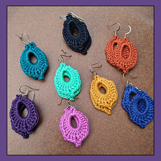 • This pattern can be worked in any size crochet yarn and appropriate hook. Experiment with different size yarn and hooks to achieve smaller or larger earrings.