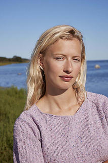 The sweater is knitted in the round, working from the top down with