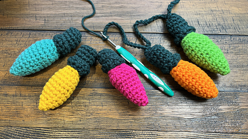 Create a strand or two of Crochet Little Flickers Christmas Lights for your home holiday decor. I prefer realism and have added my own signature touches to this simple, yet super cute design that is relatable to most people. I added a lip around the socket region to make the bulb look like it’s screwed in.